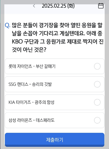 매일 새롭게 출제되는 퀴즈에 도전하며 쉽고 재미있게 참여해보세요!