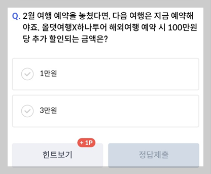 ✔ 퀴즈 정답 제출 시 최소 3포인트부터 최대 1,000포인트까지 적립 가능!