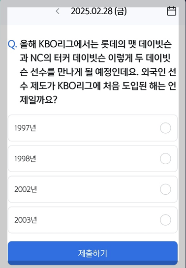매일 새롭게 출제되는 퀴즈에 도전하며 쉽고 재미있게 참여해보세요!