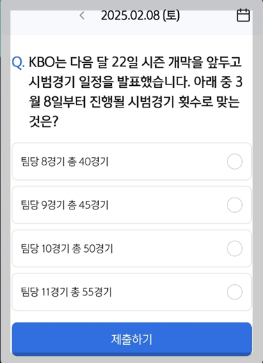 아래 중 3월 8일부터 진행될 시범경기 횟수로 맞는 것은?"