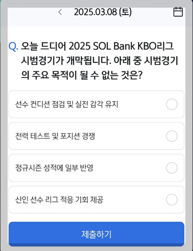 Q. "오늘 드디어 2025 SOL Bank KBO리그 시범경기가 개막됩니다.