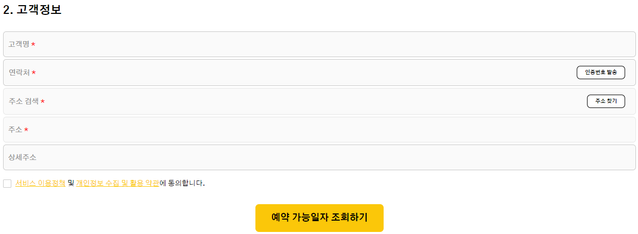 예약 희망일은 신청일 기준으로 2주 이내에 선택이 가능합니다.