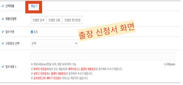 고장 증상을 정확히 기재하시고 신청하시면 됩니다.