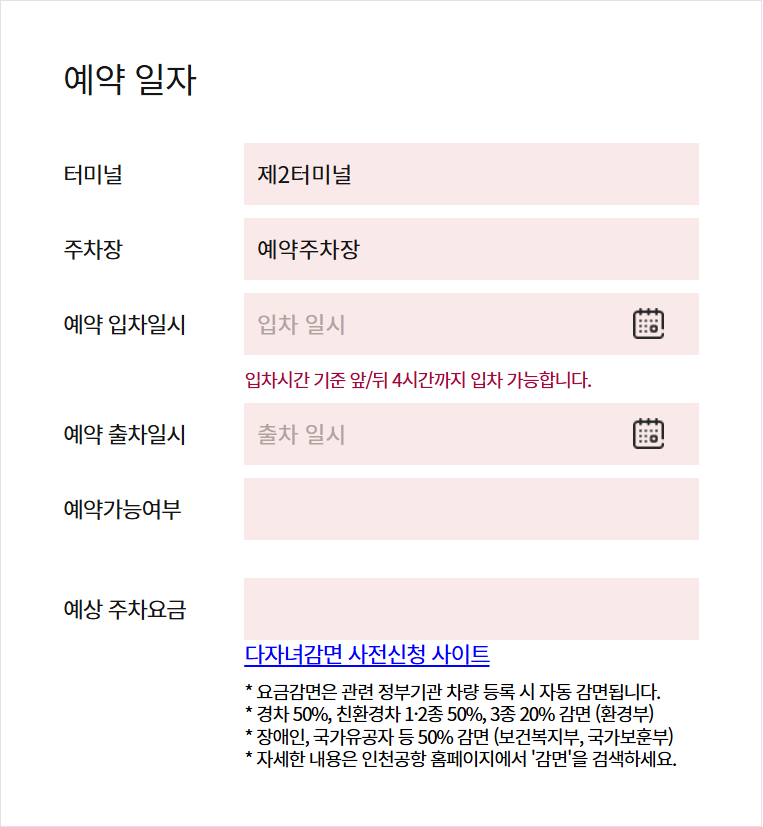 | 입차 시간 | 예약 시간 -4시간 ~ +4시간 | 자유로운 입출차 |