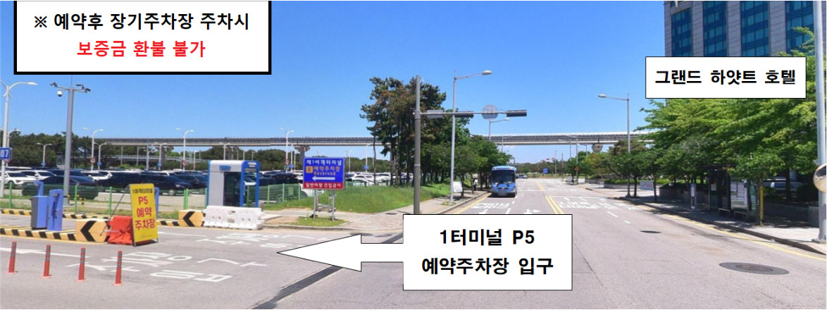 P1, P2, P3, P4 주차장은 장기주차장이며, 이곳은 예약주차장이 아니니 주의해야 합니다.