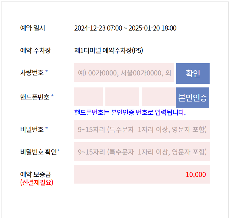 보증금 : 예약 시 보증금 10,000원 결제 (실제 주차 요금에서 차감)