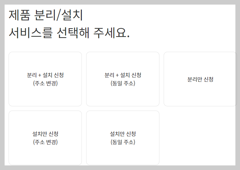- 이사 or 가정 내 제품 이동을 통해 이전설치나 재설치 요청건