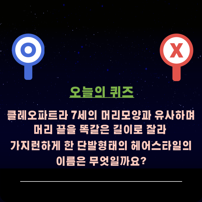 Q. "클레오파트라 7세의 머리모양과 유사하며 머리 끝을 똑같은 길이로 잘라