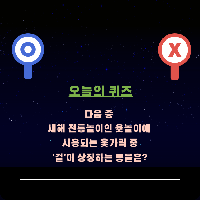 Q. "다음 중 새해 전통놀이인 윷놀이에 사용되는 윷가락 중 '걸'이 상징하는 동물은?"
