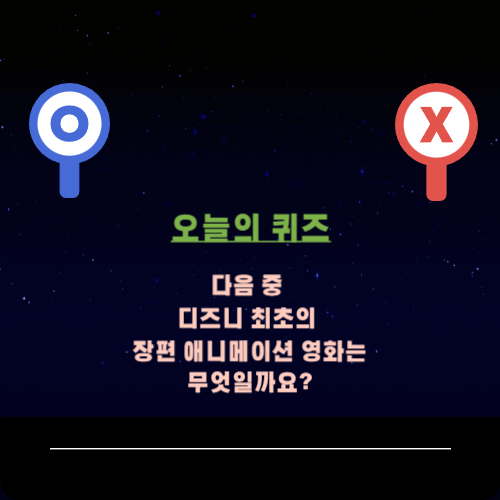 Q. "다음 중 디즈니 최초의 장편 애니메이션 영화는 무엇일까요?"